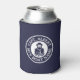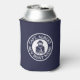 Captain old scruff logo personalised nautical can cooler. Navy blue with white circle emblem. Classic block text.