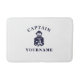 Captain old scruff with your name personalized nautical bath mat. White with navy blue text.