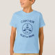 A Stylish Boys Navy and Light Blue T-Shirt with a Custom Nautical Anchor, Crossed Oars and Stars and Your Personalised Captain Name or Boat Name.