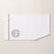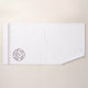 Personalised Captain with your name and boat name nautical anchor logo towel set. White with navy blue anchor and text within a circle emblem of maroon boarders.