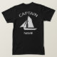 A vector graphic illustration of a sailboat on a mens Bella Canvas t-shirt. The t-shirt has the text Captain and a template for your name. ***Made in the USA*** ©2029charmainepaulson