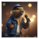 Pictured Dressed in Denims: Legendary Keith Capybara, Country Western Singer", a suave capybara takes the stage, embodying the spirit of country music. Clad in a denim jacket, and matching hat Keith Capybara serenades his captive audience. The bokeh background twinkles softly, evoking the glow of warm stage lights and distant stars. With a soulful gaze and a hint of a smile, this capybara exudes the charm of a seasoned performer.