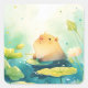 A cute capybara sits calmly on a floating lily pad, surrounded by vibrant green leaves and delicate water lilies. The tranquil water reflects the warm glow of sunlight, creating a dreamy and peaceful atmosphere. Soft pastel tones and a whimsical touch give this nature-inspired scene a gentle and relaxing feel. This serene design captures the capybara’s love for water and nature, making it perfect for animal lovers who enjoy calming and aesthetic wildlife imagery.
