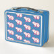 This is a standard metal lunchbox that appears to work just fine. We designed this box ourselves with an uploaded photo and custom text on the front and back. It looks absolutely beautiful except the front of the lunchbox is not centered like it shows in the photo. The print borders don't align with the inset flat part of the box where the preview photo online showed it perfectly centered in there. The back looks nice and centered though.