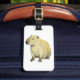 A watercolor painting of a Capybara adorns this customisable luggage tag!