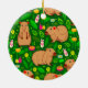 Capybara Sketch with Spring Flowers on Green Ceramic Tree Decoration