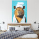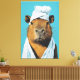 A charming and whimsical portrait of a capybara, the world’s largest rodent, dressed in a spa-like attire. The animal is draped in a white towel with another wrapped around its head, set against a soothing blue background. The capybara’s calm and serene expression gives the impression that it’s enjoying a moment of relaxation, adding a touch of humour and warmth to the scene. The detailed brushwork highlights the capybara’s fur and the soft texture of the towels, making this artwork a delightful and lighthearted piece.