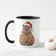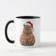 Chill capybara wearing a mini Santa hat, floating in a "hot spring" (mug of cocoa). Tiny ducks on its back also wear hats.