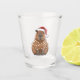 Chill capybara wearing a mini Santa hat, floating in a "hot spring" (mug of cocoa). Tiny ducks on its back also wear hats.