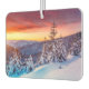 Air freshener shown with a photo print of a beautiful alpine snow scene at sunset and a scent of black ice.