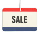 A sale promotional air freshener you can easily customise in a few steps if you want. Edit the text line fields you see on this product page, with your own short words. Use capital letters for best results.