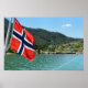 Poster print of the Norwegian flag on a car ferry between Solvorn and Urnes on a fjord in Norway.