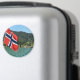 Round magnet with the Norwegian flag on a car ferry between Solvorn and Urnes on a fjord in Norway.