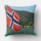 Throw pillow with the Norwegian flag on a car ferry between Solvorn and Urnes on a fjord in Norway.