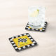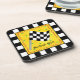 These coasters are great for a tailgating party at a race or just to show your love of racing. These coasters make a great gift for an auto motor or motorcycle race fan or someone who has won a race, minor or big or for attending a special race. It's personalised with a name and race number that can be customised to a word or date or deleted. A waving black and white chequered flag is centred on a textured yellow background. A black and white chequered border surrounds the art. Fully customisable. The words in red text line the inside of the border and say Race Fan, Start the race and chequered flag. Green stars are on the background. This design is great for multiple race type formats. Fully customisable and makes a great gift.