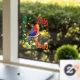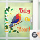 This car rear window cling is based on the artwork ‘Chromatic Serenade: Bird on Branch’ by Fantabuloustef. It is surrounded by the message «  baby in board » to ask the other drivers to be very cautious to your baby’s security.