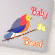 This car rear sticker is based on the artwork ‘Chromatic Serenade: Bird on Branch’ by Fantabuloustef. It is surrounded by the message « baby in board » to ask the other drivers to be very cautious to your baby’s security.