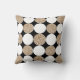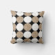An attractive contemporary pillow featuring carmel coloured swirls with large white dots on a black background.