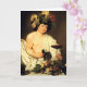 Caravaggio Bacchus greeting card. Oil painting on canvas from 1595. Bacchus is one of Italian artist Caravaggio’s most famous paintings. The work features a young man dressed as the classical god Bacchus with leaves and grapes in his hair and a bowl of fruit sitting before him. The painting famously contains a wine carafe in which the image of the painter at his easel can be seen. The wine glass the young man holds likewise contains his reflection. A great gift for fans of Caravaggio, Baroque art, Mythology paintings, and wine.