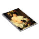Caravaggio Bacchus notebook. Oil painting on canvas from 1595. Bacchus is one of Italian artist Caravaggio’s most famous paintings. The work features a young man dressed as the classical god Bacchus with leaves and grapes in his hair and a bowl of fruit sitting before him. The painting famously contains a wine carafe in which the image of the painter at his easel can be seen. The wine glass the young man holds likewise contains his reflection. A great gift for fans of Caravaggio, Baroque art, Mythology paintings, and wine.