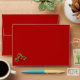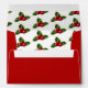 Card envelope shown in red with a Christmas holiday holly print design on the inside.