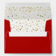 Card envelope shown in red with a festive gold stars print design on the inside.