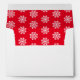 Card envelope shown with a red colour on the inside with a snowflakes print design.