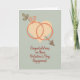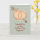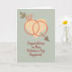 Engagement congratulations card for a couple getting engaged on Valentine's Day. The design is a light green background, a heart with an arrow, and a set of illustrated rings. Thanks to the Hungryjpeg for some of the elements in the design.