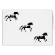 This blank card features a graphic black and white computer manipulated photo of a Friesian cantering in triplicate.