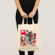The printing came out very well, better than I had anticipated. The natural color fabric is sturdy with strong seams and comfortable handles. This tote fits easily over my shoulder. As it is filled, the bottom flattens out--very cool! I would buy this product again. This grocery tote holds a lot of groceries! The image quality was very good. The colors were a little darker than I had expected. The darkness may have been due to printing on a natural color fabric rather than on white. The cat design is attractively centered on the tote. The spirit of the design is very lively, just as it appears on the Zazzle website.