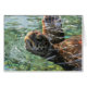 A greeting card showing a side-view image of a beautiful green sea turtle (Chelonia mydas) swimming in crystal clear green water, surrounded by ripples made from poking its head above the water to get a breath of fresh air.