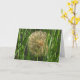 Puffball. Close up of a brown dandelion like puffball in green grass. On inside - "Make a Wish - Happy Birthday!"