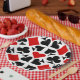Set of four card suit icons red, black and white colourful pattern. These casino Paper Plates are perfect for anyone who enjoys card games like poker, bridge or blackjack. A fun gift for friend, coworkers or family on Christmas or Birthdays, and any gift-giving occasions!