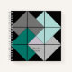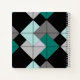 Personalise this mini barn quilt patterned notebook with a name or other text and your choice of paper styles, including blank sketch or graph paper. Traditional simple quilt block "Card Trick" pattern created in modern neutral palette of teal blues and grey shades on black. Nice gift for quilters or other creatives.