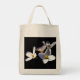 The printing came out very well, better than I had anticipated. The natural color fabric is sturdy with strong seams and comfortable handles. This tote fits easily over my shoulder. As it is filled, the bottom flattens out--very cool! I would buy this product again. This grocery tote holds a lot of groceries! The image quality was very good. The colors were a little darker than I had expected. The darkness may have been due to printing on a natural color fabric rather than on white. The cat design is attractively centered on the tote. The spirit of the design is very lively, just as it appears on the Zazzle website.