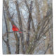 A male Cardinal and a black capped Chickadee sit in my redbud tree during a snow storm.