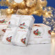 This pattern features a Cardinal and a delicate gold coloured wreath. On the bottom of the wreath the are poinsettias and evergreen branch. Below the wreath are the words Seasons Greetings.