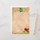 Christmas and Holiday stationary with Holly along the top border and a stylistic Cardinal in the lower right on a sprig of Holly all set on an antiqued background.