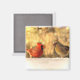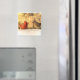 Here is a magnet featuring Mr. and Mrs. Northern Cardinal. It is autumn with glorious foliage in the background but the first snow has fallen to give us a preview of winter. He is a brilliant red colour. She is orange, gold and brown. Both have crests and orange beaks. They are truly the royalty of backyard birds with their distinctive song and lovely colours.