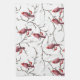 Cardinal Birds, Winter Cherries and Snow Pattern Tea Towel
