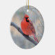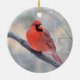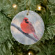 Cheery red cardinal has a bird's eye view, from ceramic ornament. Eye catching Northern Cardinal can be used as decoration all year round!