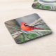 This dynamic red cardinal with feather crest looks sharp on cork coasters- nice touch for casual parties !