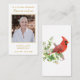 This simple memorial prayer card can be given as a keepsake at a Celebration of Life or funeral service or sent as a special tribute to those who were unable to attend. Personalise this card with a favourite photo, name, date. Back of card features a red cardinal bird with elegant floral. Cardinals appear when angels are near. Easy to customise text and photo. Our heartfelt condolences to you and family during this very difficult time.