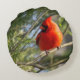 Northern Cardinal strikes a pose on decorative round pillow. Lovely accent for home decor!