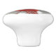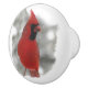 This ceramic door knob features a brilliant crimson red cardinal. He is truly the king of backyard birds! Here he is perched on a snowy rail eating black oil sunflower seeds while the winter snow swirls around him.