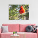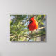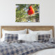 Canvas print with bright Northern cardinal in pines adds a wonderful accent to home decor.