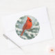 This winter-themed round sticker is ideal for any cardinal bird enthusiast. It showcases a watercolor illustration of a vibrant male cardinal perched on a snow-covered fir tree, creating a stunning winter scene. Perfect for adorning favor bags, Christmas cards, and holiday gifts. Susang6 used AI tools to create this artwork