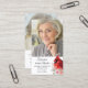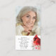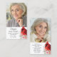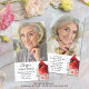 Share custom and personalised memorial prayer cards featuring one or two photos, a red watercolor cardinal and pink flowers, the title FOREVER IN OUR HEARTS in an elegant script typography, name and dates and a poem or replace with your own custom text as a remembrance memento at a funeral memorial service or Celebration of Life event. ASSISTANCE: For help with design modification or personalisation, contact the designer BEFORE ORDERING via the Zazzle Chat MESSAGE tab below or email makeitaboutyoustore@gmail.com.