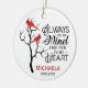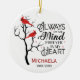 Red cardinal memorial ornament. Always on my mind forever in my heart. Customisable with name and dates.