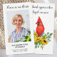 Watercolor Cardinal and Sunflowers with eucalyptus Sympathy Funeral Prayer Cards. This modern yet elegant memorial prayer card features a red cardinal bird in a bouquet of sunflowers. Front "Forever in our Hearts" Personalise this memorial funeral prayer card with your loved ones photo, name & dates, and sentiment. Back ~ 'Cardinals appear when Angels are near' Poem. This memorial prayer card will be a treasured keepsake, for funeral services, and celebration of life events. COPYRIGHT © 2020 Judy Burrows, Black Dog Art - All Rights Reserved. Cardinal Memorial Photo Funeral Prayer Card